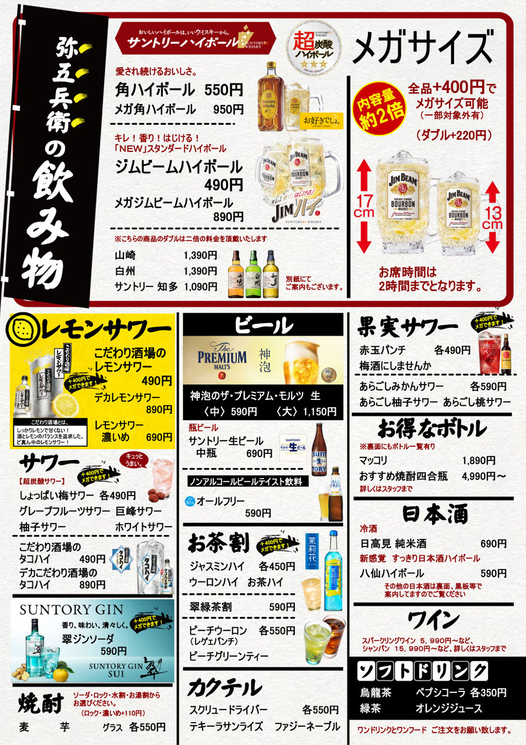 当日オススメや日替わり限定メニューは店内の黒板に大きく表示されておりますのでご確認下さい。